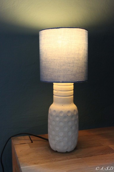 Der robuste harte Beton ist ein schöner Kontrast zum weichen Textil des Lampenschirms.